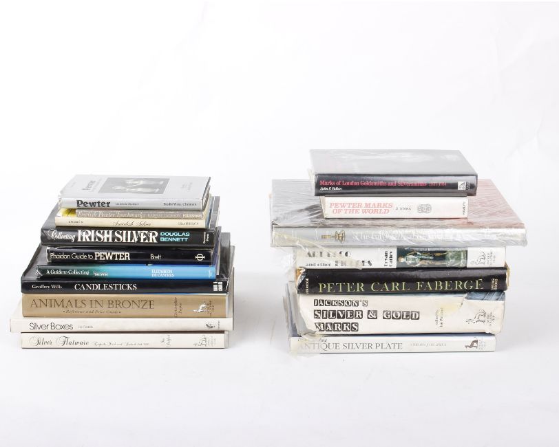 A Collection of Silver mark reference books plus others to include Jackson's Silver & Gold Marks of England, Scotland & Ireland edited by Ian Pickford,Understanding Antique Silver Plate by Stephen L Helliwell, The English Candlestick 1425-1925 by Eloy Koldeweij, Art Deco and other Figures by Bryan Catley, Peter Carl Faberge His life and works by Henry Charles Bainbridge, Handbook of Pottery & Porclain Marks by JP Cushion, English Delfware by F.H Garner, The Ceramic art of China & other countries of the Far East by William Bowyer Honey, Luckey's Hummel Figurines & Plates by Carl F Luckey.