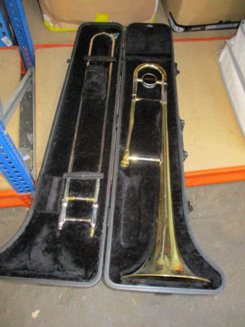 A pre-owned Jupiter trombone in hard case.