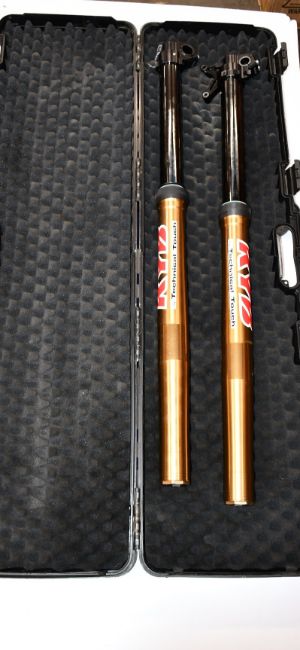 A pair of KYB by Technical Touch spring suspension forks for cross country/motocross motorbikes (Likely pre-owned, but look to be in good condition).