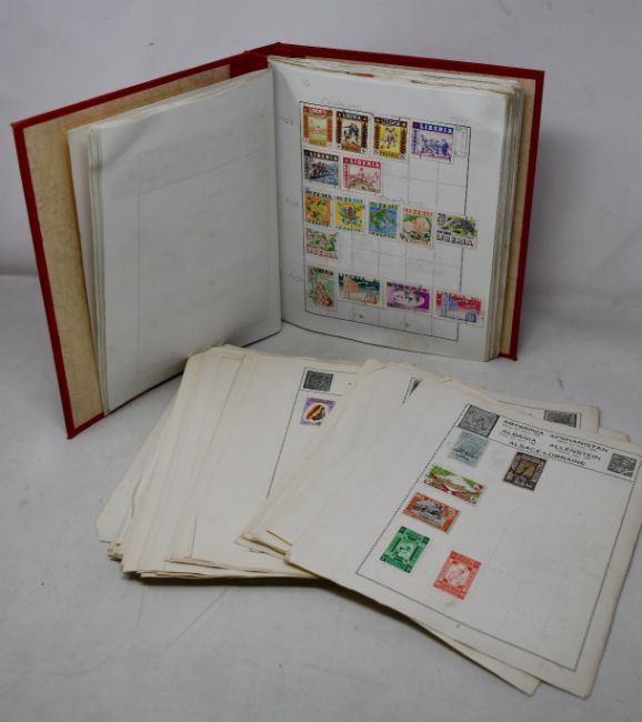 World stamp collection in two albums and loose pages.