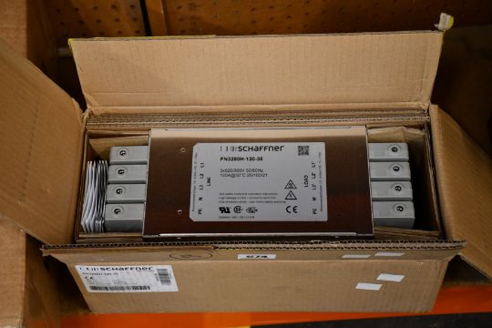 A Schaffner FN3280 120A 3 x 520/300V 50/60Hz, Chassis Mount EMI Filter, Terminal Block 3 Phase.