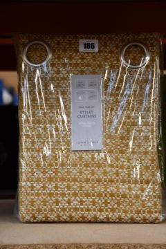 A pair of as new John Lewis & Partners Rona weave ochre eyelet curtains (RRP £180.00).