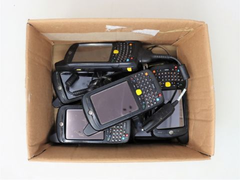 Eight pre-owned Motorola MC659B-PDOBAA00100 Hand Held Computer/Barcode Scanners (No batteries included).