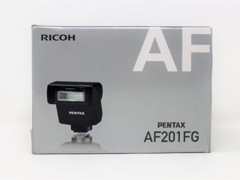 A boxed as new Pentax AF201FG Compact Auto Flash (Box opened, damaged box).