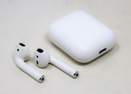 A pre-owned Apple Airpods (2nd Gen A2031+A2032) with charging case (A1602) (Some cosmetic marks to Airpods and case).