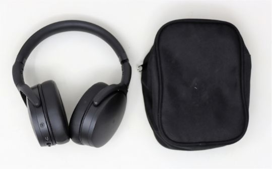 A pre-owned pair of Sennheiser HD 4.50 On-Ear Headphones in Black with 3.5mm cable and storage bag and a pre-owned pair of Sony WH-CH700N On-Ear Wireless Headphones in Grey