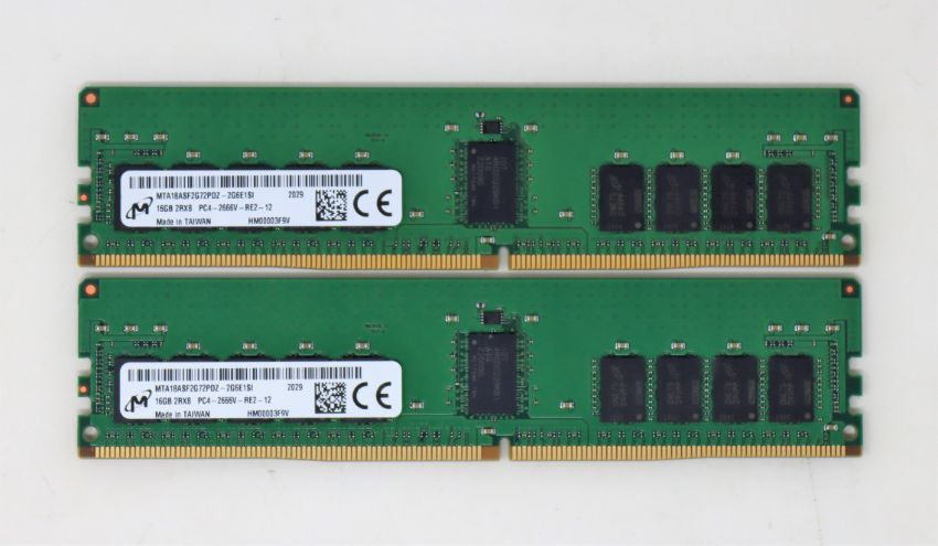Eight as new Micron MTA18ASF2G72PDZ-2G6E1SI 16GB 2Rx8 PC4-2666V-RE2-12 Server Memory Modules (Not in original packaging).