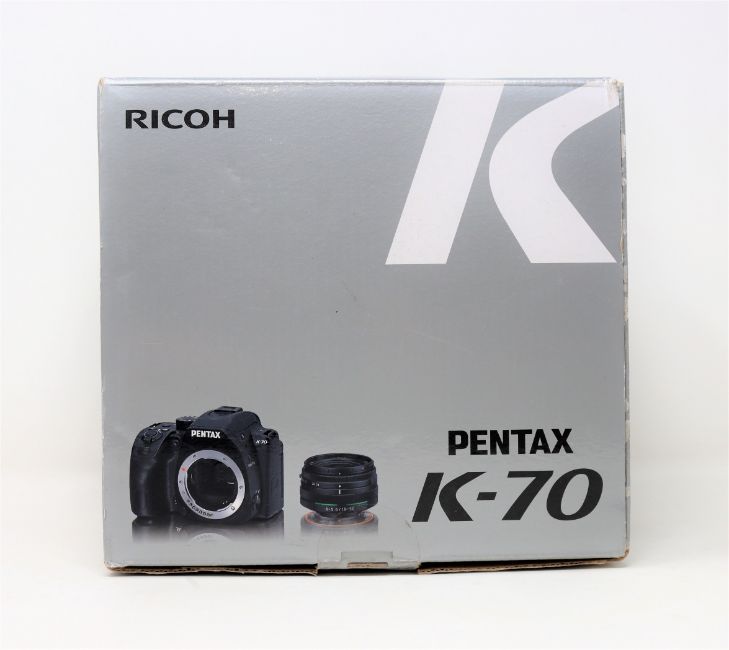 A boxed as new Rioch Pentax K-70 with 18-50mm WR Lens Kit (Box sealed, damage to box).