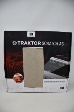 A boxed as new Native Instruments Traktor Scratch A6 digital vinyl system (Some damage to box).