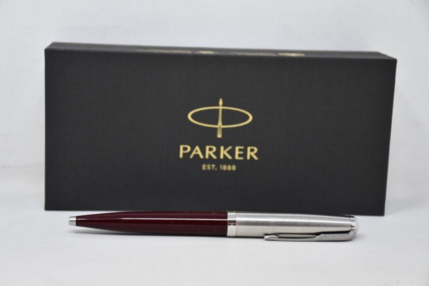 Four boxed as new Parker 51 Ballpoint Pens - Burgundy Resin Chrome Trim.