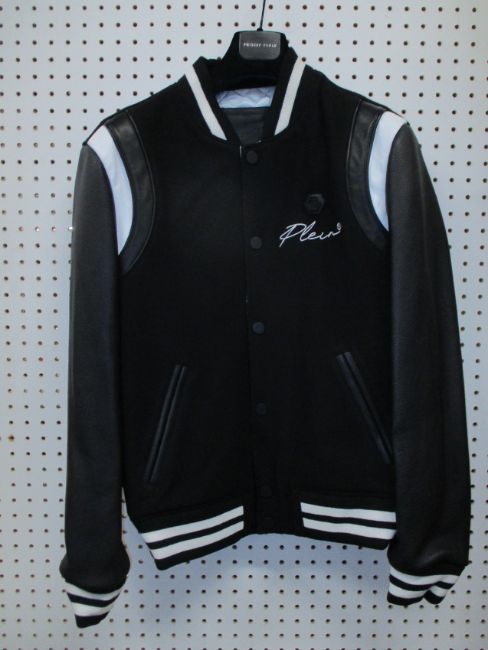 An as new Philipp Plein Signature stripe-trimmed bomber jacket (L - RRP £1,185).