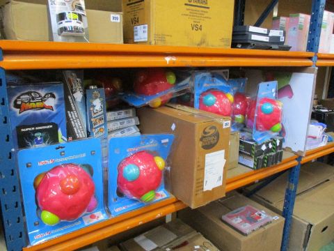 A quantity of miscellaneous toys, games and related to include Fast & Furious Ice Chargers, Elite Table Top Curling Games and TickIt Sensory Meteor Balls.