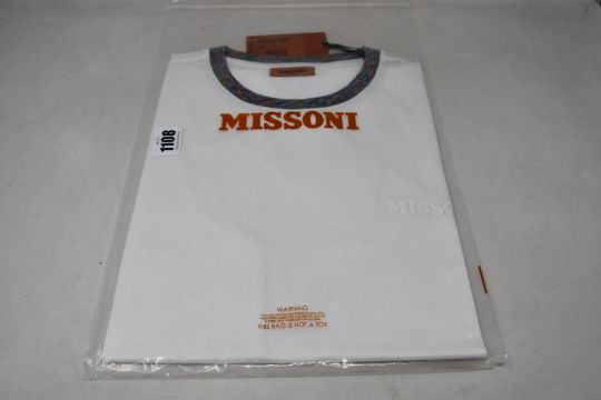 An as new Missoni print crew neck T-shirt in white (S - RRP £160).