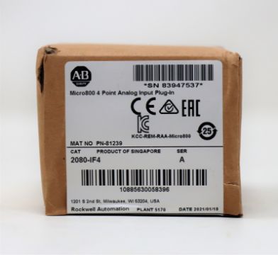 A boxed as new Allen-Bradley Micro800 4 Point Analog Input Plug-In (CAT: 2080-IF4 A) (Box sealed).