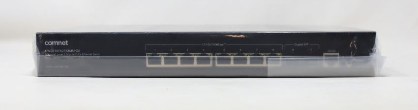 A boxed as new Comnet CWGE10FX2TX8MSPOE Managed Layer 2 Ethernet Switch with 8 × 10/100/1000Base-TX Ports with IEEE802.3at PoE + 2 × 1000Base-FX SFP Ports (Box damaged).