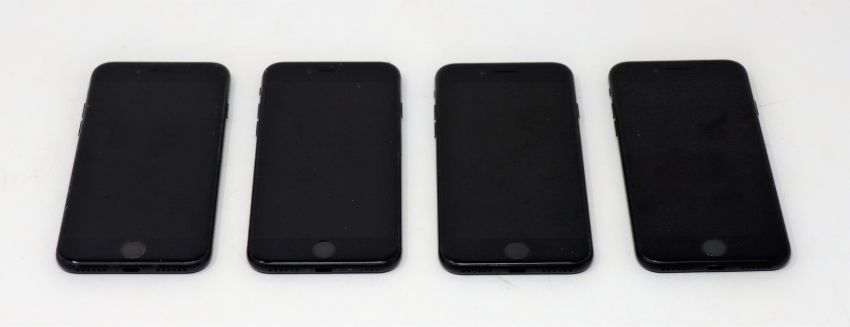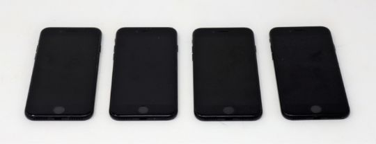 SOLD FOR PARTS: Four pre-owned Apple iPhone 7 (AT&T/T-Mobile/Global/A1778) 32GB in Black (iCloud activation clear. Remote management locked. Sold as seen, for parts only).