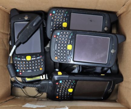 Eight pre-owned Motorola MC659B-PDOBAA00100 Hand Held Computer/Barcode Scanners (No batteries included).