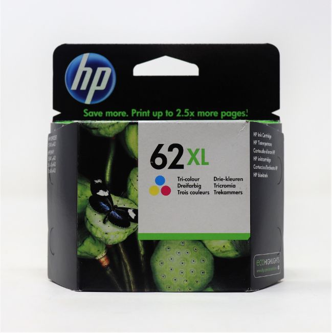 Five boxed as new HP 62XL High Yield Tri-Color Ink Cartridges (P/N: C2P07AE#UUS Expiry Date: Nov 2022).
