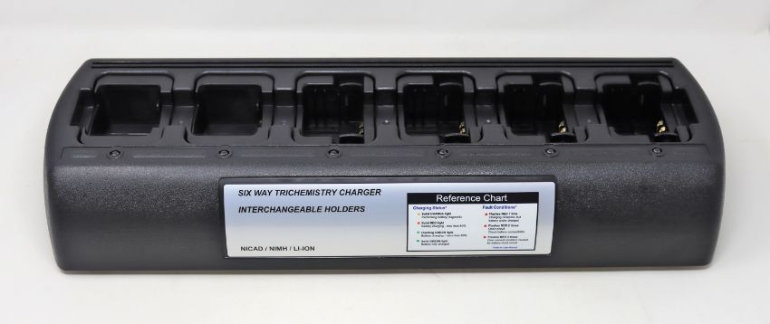 A boxed as new unbranded six way trichemistry charger with interchangeable holders in black (PN: RC2022NB).