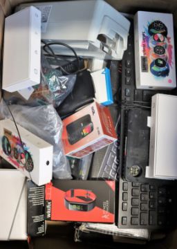 COLLECTION ONLY: A box of assorted new and pre-owned electrical items and accessories (All items sold as seen).