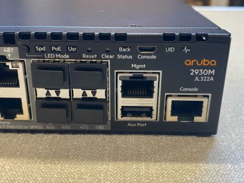 COLLECTION ONLY - A boxed Aruba 2930M JL322A 48-port 48G POE+ 1-SLOT network switch in black (possibly pre-owned).