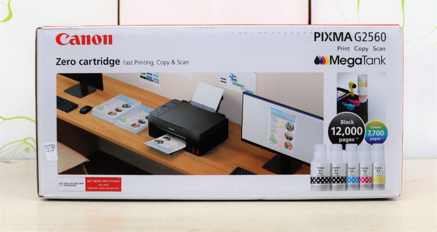 A boxed as new Canon PIXMA G2560 MegaTank all-in-one printer in black (box opened) (box damaged).