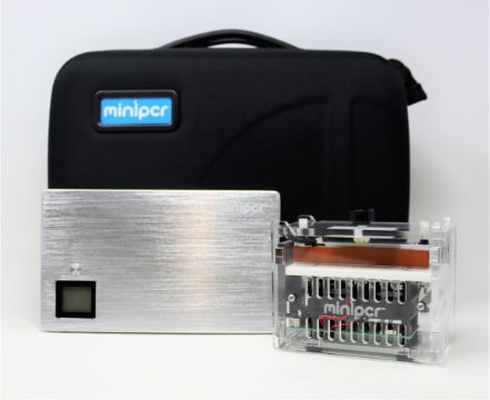 A pre-owned miniPCR thermal cycler for labs and classrooms with 20000mAh miniPCR power pack and accessories in purpose designed case.