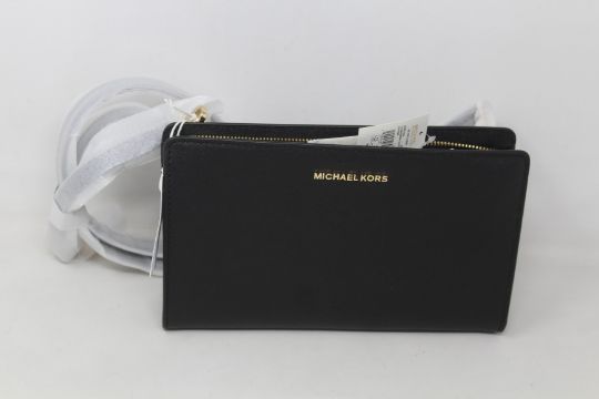 An as new Michael Kors Jet Set travel crossbody clutch bag in black leather.