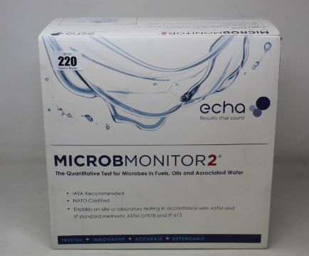 An Echa MicrobMonitor2 bulk with dispensers, 50 pack for detection and enumeration of contaminating microbes in fuels lubricants and water (Expires: (8-22°C): 19 Feb 2022 (2-8°C): 19 Dec 2022).