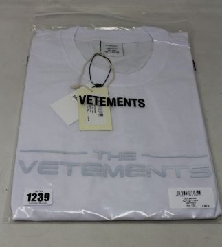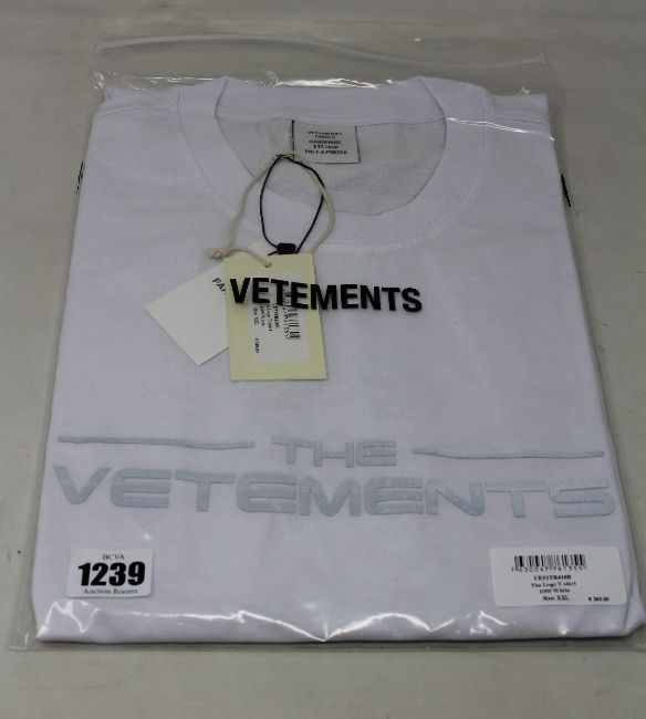 An as new unisex Vetements The Logo T-shirt in white (XXL).
