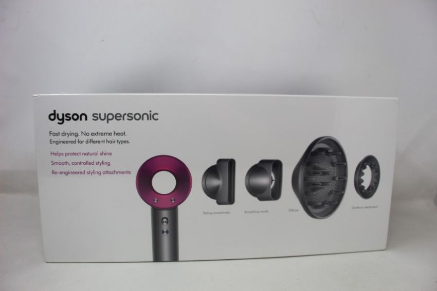 A boxed as new Dyson Supersonic hairdryer.