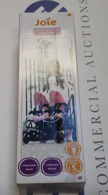 Four boxed as new Joie Junior Aire twin doll pushchairs.