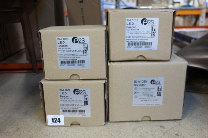 Three e2S LED Beacons (IS-L101L-G/R, G/A and G/G) and one IS-A105N Sounder.