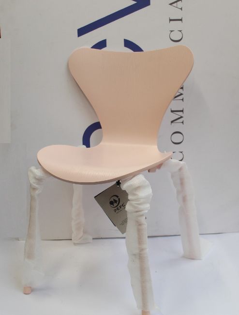 A children's Fritz Hansen chair with an iconic design created by Arne Jacobsen (Colour: Rose).