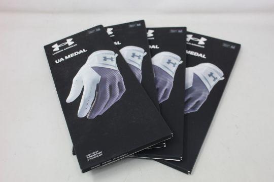 A large quantity of as new Under Armour Iso-Chill and UA Medal golf gloves (Approximately 100 gloves, all men's, left, in various sizes).