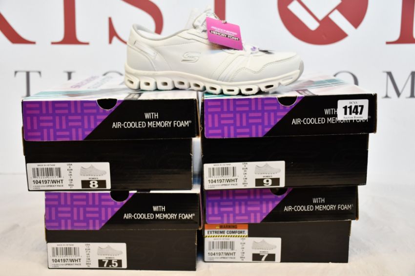 Four pairs of women's as new Skechers Glide Step Upbeat Pace trainers (UK 4, 4.5, 5, 6).