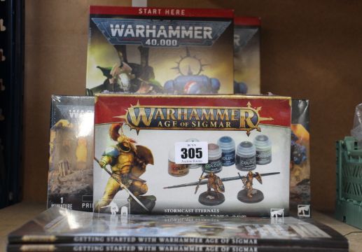Warhammer 40,000 Recruit Edition - Starter Sets (x2), Space Marines - Primaris Redemptor Dreadnought (x2) and Age Of Sigmar - Stormcast Eternals Vindictors + Paint Sets (x2), all as new.