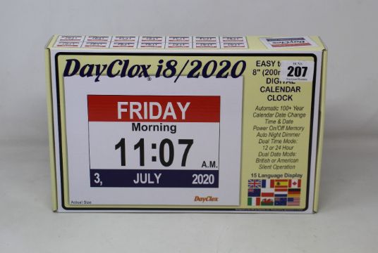 Ten boxed as new DayClox i8/2020 - East to Read 8" LED Digital Calendar Clocks.