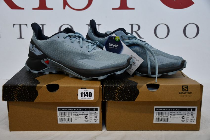 Three pairs of men's as new Salomon Alphacross Blast (UK 10, 10.5, 11 - One pair unboxed).