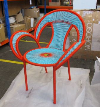 A Moroso Banjooli outdoor chair with arms created by Sebastian Herkner (Colour: Blue/Orange).