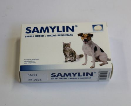 Twenty four boxes of Samylin liver supplements for small breed dogs (Expiry date 02/2024).