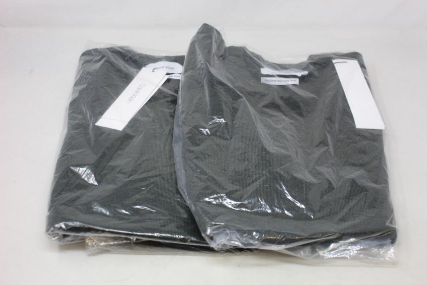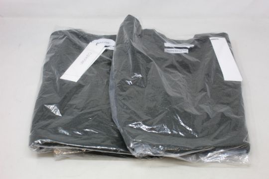 Two as new Calvin Klein superior wool crew neck sweaters in dark olive (M).
