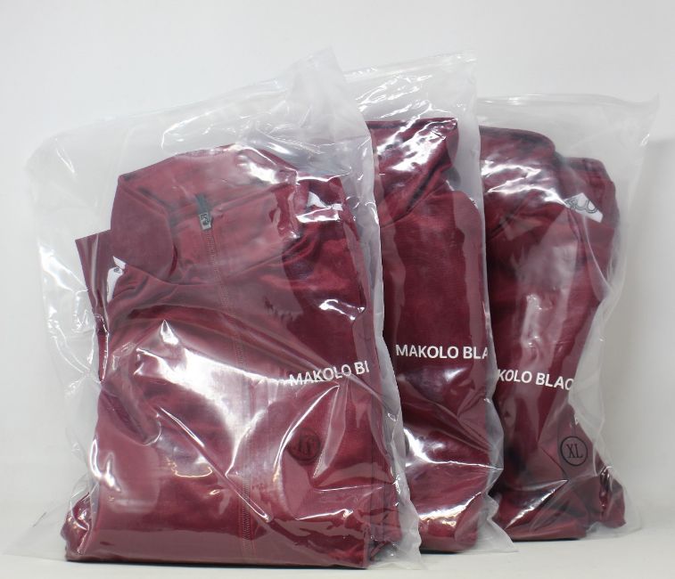 Three as new Makolo Blacc Neo Classic tracksuits in burgundy (XS, S, XL - RRP £80 each).