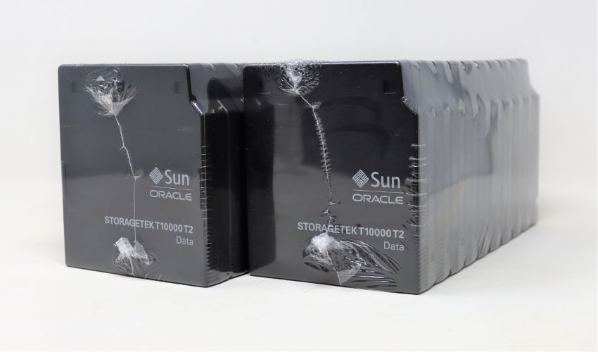 Twenty as new Sun StorageTek T10000 T2 Data Tape Cartridges (Two packs of ten, packaging sealed. Boxed).