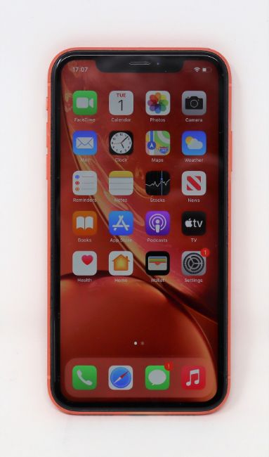 A pre-owned Apple iPhone XR (Global/A2105) 64GB in Coral (iCloud activation clear) (Checkmend report ID: CM18102733-8F435).