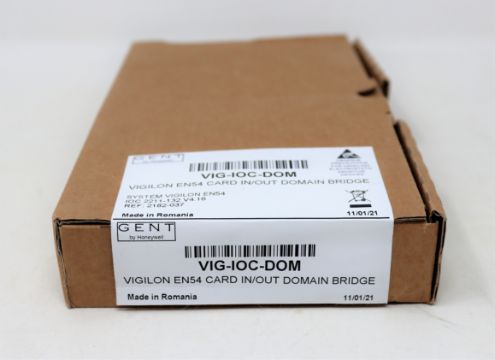 A boxed as new Honeywell Gent VIG-IOC-DOM Vigilon EN54 Input/Output Domain Bridge Card For VIGPLUS-24 And 72 Vigilon Panels.