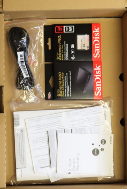 A boxed as new Canon EOS C200 4K EF Mount Cine Camera (Body only) with SanDisk Extreme PRO 128GB CFast 2.0 Memory Card and SanDisk Extreme PRO CFast 2.0 Reader Writer (Canon box opened to check contents. SanDisk boxes sealed. Manuals and UK plug power cable included) (M/N: 2215C027 AA).