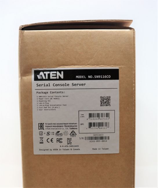 A boxed as new Aten SN9116CO Serial Console Server (Serial: A1K6-099-0015).
