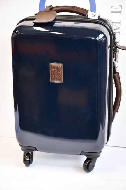 An as new Longchamp Paris BOXFORD + cabin suitcase in blue.