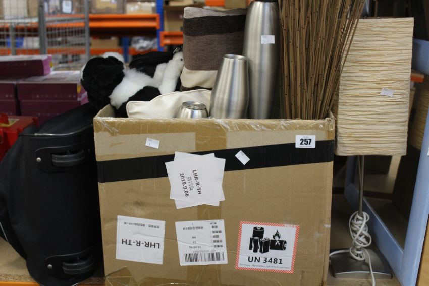 A mixed lot of pre-owned household items including lamps, mirror, pictures, wall clocks and backpack, etc.
